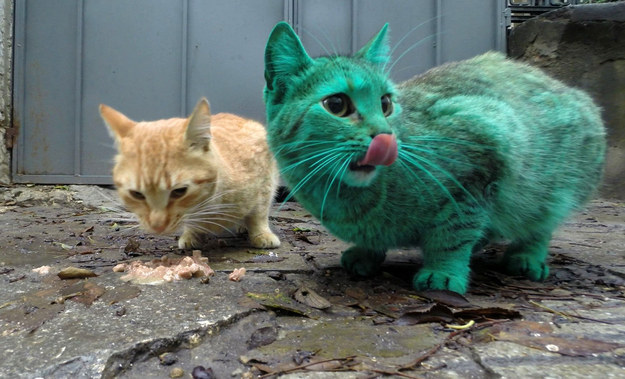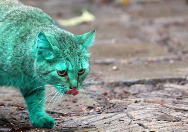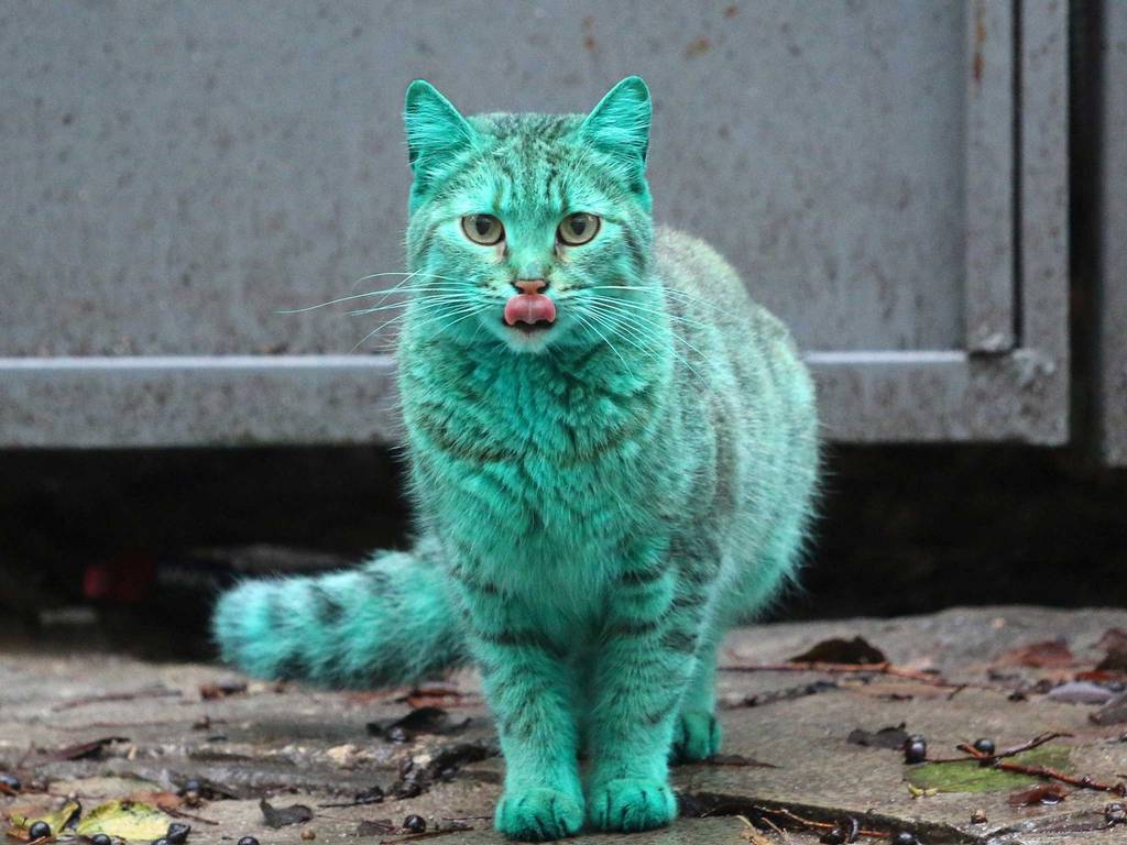 Болгарский бирюзовый кот (12 фото) Категория: Животные, PEGI 0+ 9 декабря 2014 3 Было установлено, что кот стал себя зеленым, когда он заснул в остатках синтетической краски +11