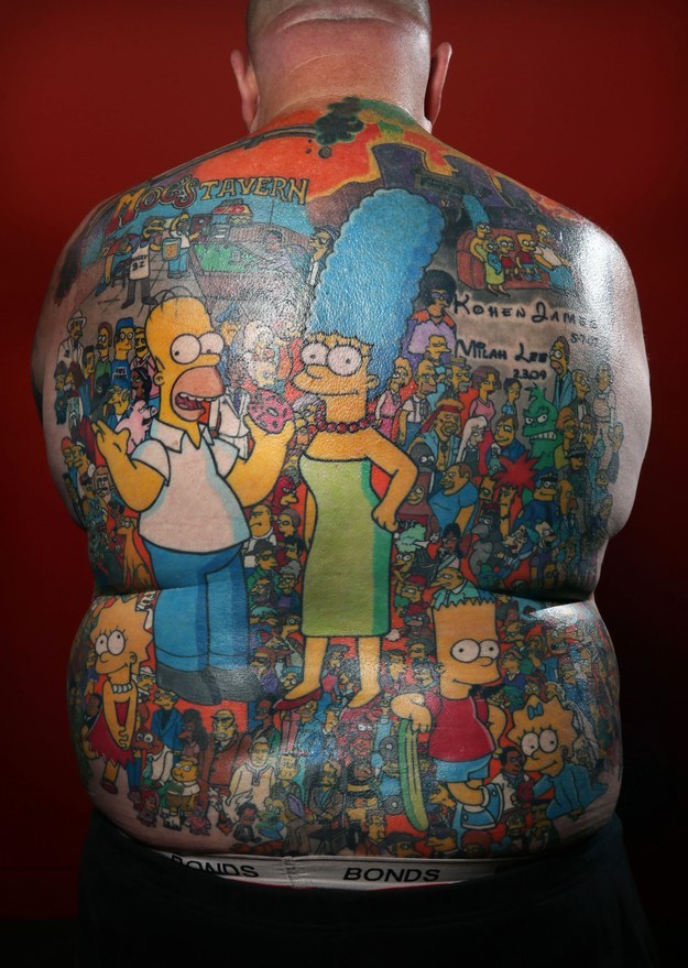Фанат Симпсонов (3 фото) Категория: Татуировки 17 декабря 2014 Фанат Симпсонов из Австралии набил тату с персонажами на всю спину +13