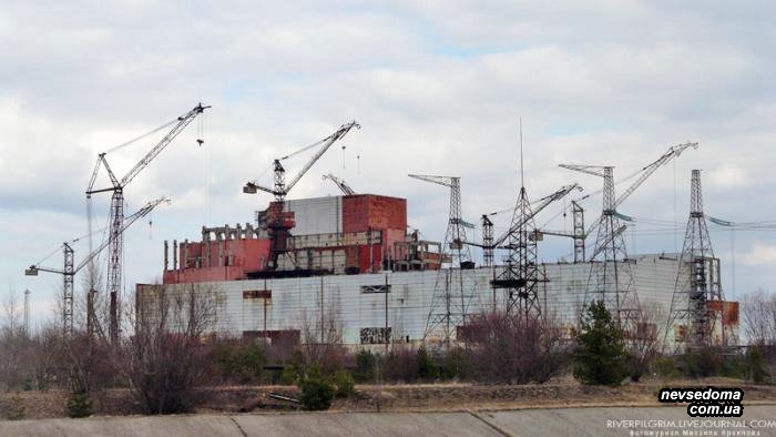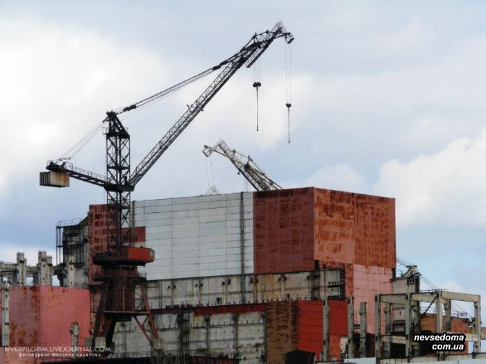 Слева - четвертый энергоблок, в центре недостроенные 5-6, справа - недостроенная градирня