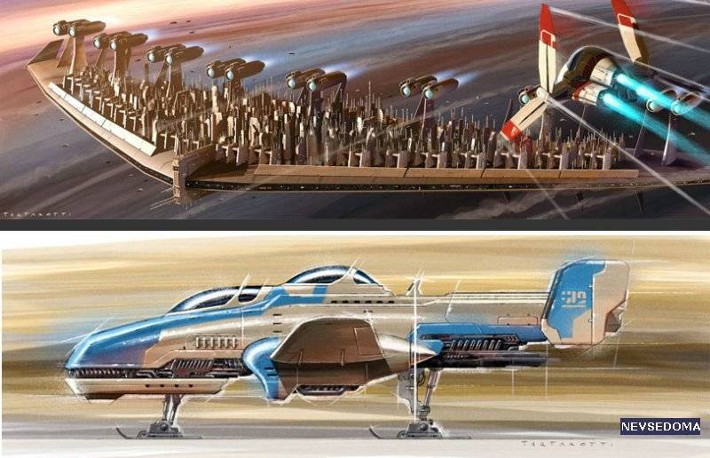 Концептуальные звездолеты, футуристические иллюстрации на тему звездных войн будущего и экспериментальная воздушная техника, которая вполне может стать реальностью через каких-нибудь пару десятков лет. conceptships