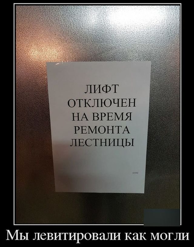Демотиваторы 2869 14 марта 2024 0 Категория: Подборки, Демотиваторы Подборка смешных демотиваторов, которые поднимут настроение и покажут реальную жизненную картину. Если понравилась подборка, проголосуйте пожалуйста +6