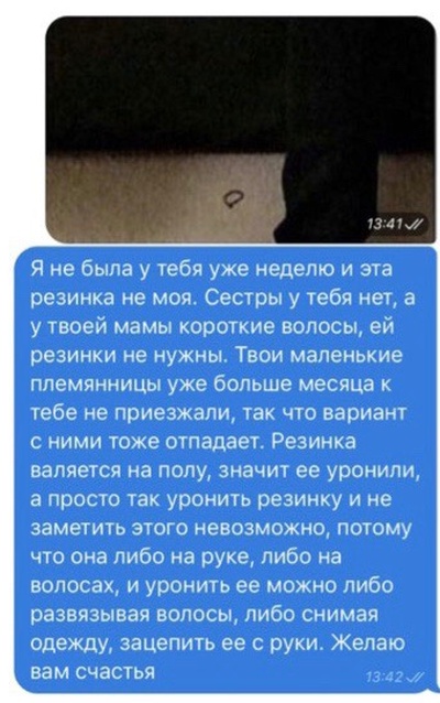 Парень попался на измене (2 фото) Категория: Приколы 26 июня 2019 Парень выслал селфи своей девушке и был пойман на измене. Можете попытаться разбудить своего внутреннего Шерлока, ведь догадаться, что на этом фото могло вызвать ее подозрения, очень непросто. -1 измены, социальные сети, фото