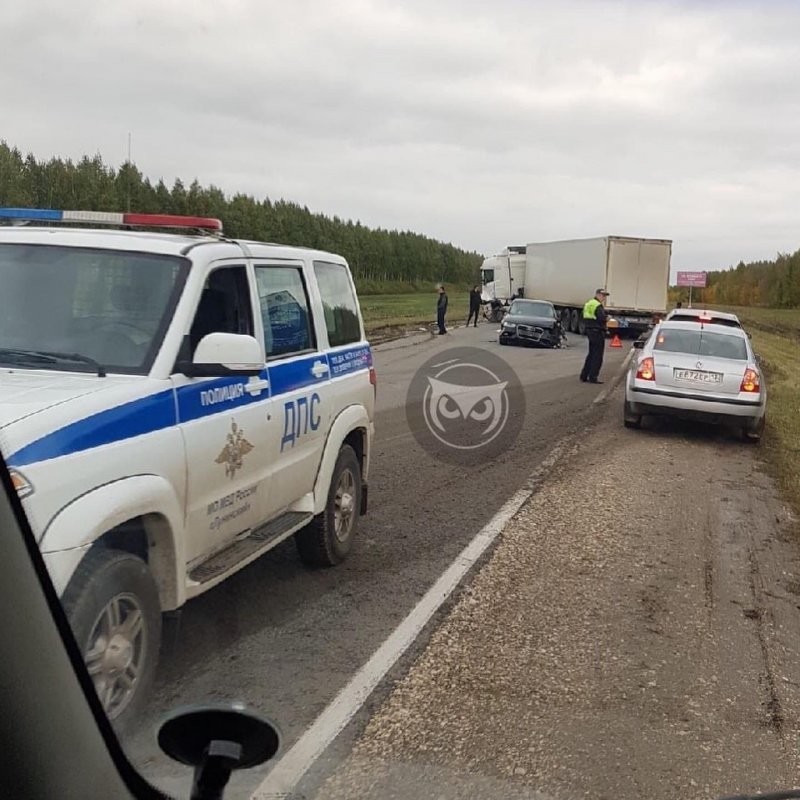 На границе Пензенской области и Республики Мордовия на трассе Р-158 произошло ДТП с участием трех большегрузов и легкового автомобиля Audi. Обошлось без пострадавших. Аварию спровоцировал водитель легкового автомобиля