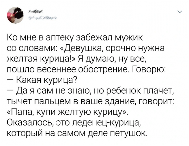 Остряки из Твиттера всегда имеют в запасе много забавных и курьезных историй, которые они умело помещают в маленький пост. Не даром, Чехов говорил, что краткость - сестра таланта. А если сестричка еще и с хорошим чувством юмора - вообще замечательно. Итак, давайте отвлечемся от забот и посмотрим новую подборку твитов.