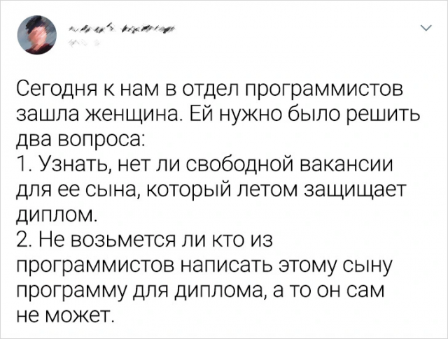 Остряки из Твиттера всегда имеют в запасе много забавных и курьезных историй, которые они умело помещают в маленький пост. Не даром, Чехов говорил, что краткость - сестра таланта. А если сестричка еще и с хорошим чувством юмора - вообще замечательно. Итак, давайте отвлечемся от забот и посмотрим новую подборку твитов.
