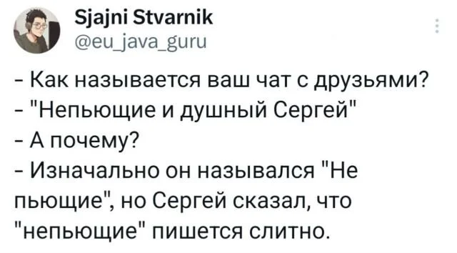 Остряки из Твиттера всегда имеют в запасе много забавных и курьезных историй, которые они умело помещают в маленький пост. Не даром, Чехов говорил, что краткость - сестра таланта. А если сестричка еще и с хорошим чувством юмора - вообще замечательно. Итак, давайте отвлечемся от забот и посмотрим новую подборку твитов.