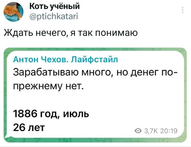 Остряки из Твиттера всегда имеют в запасе много забавных и курьезных историй, которые они умело помещают в маленький пост. Не даром, Чехов говорил, что краткость - сестра таланта. А если сестричка еще и с хорошим чувством юмора - вообще замечательно. Итак, давайте отвлечемся от забот и посмотрим новую подборку твитов.