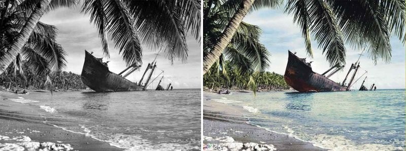 4. Потопленное японское судно "Кюсю-Мару" у острова Гуадалканал. Фотография сделана 3 марта 1945 года