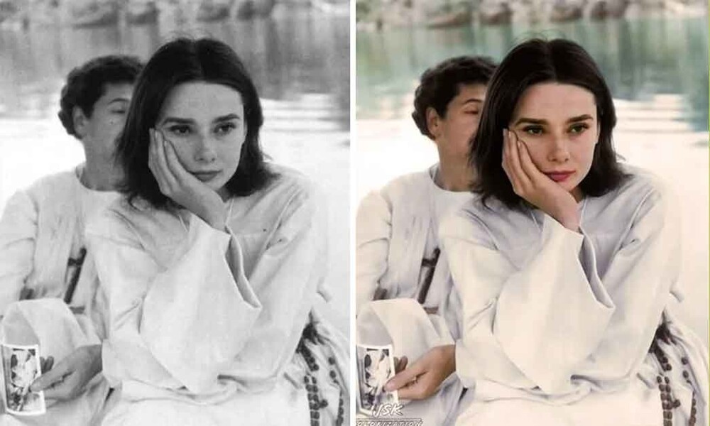 Просматривая чёрно-белый мир фотографий, мы забываем, что в реальной жизни цвет был таким же ярким, как и сейчас. К счастью, благодаря талантливым художникам мы можем изучить старые кадры более внимательно, чем когда-либо. Например, снимок Одри Хепбёрн на площадке фильма "История монахини" 1958 года. Да, существует множество цветных фотографий культовой актрисы, но лишь единицы запечатлели откровенные, закулисные моменты, подобные этому.