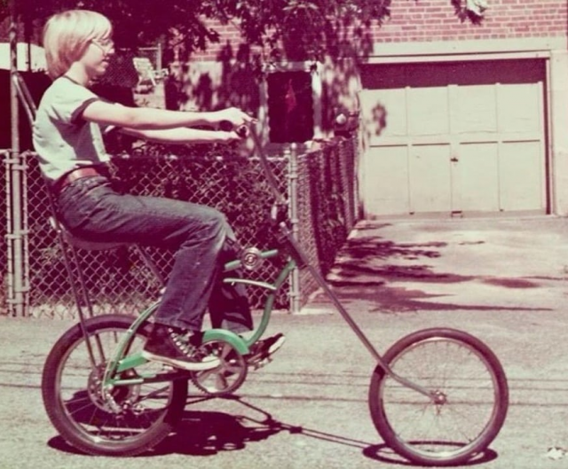 Мальчишка Билл Гейтс на своём любимом велосипеде