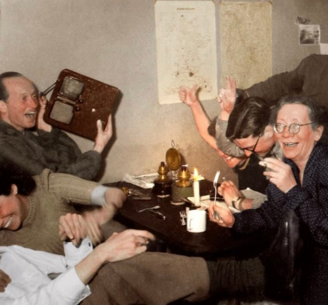 Члены голландского сопротивления празднуют новость о смерти Адольфа Гитлера, 1945 год.