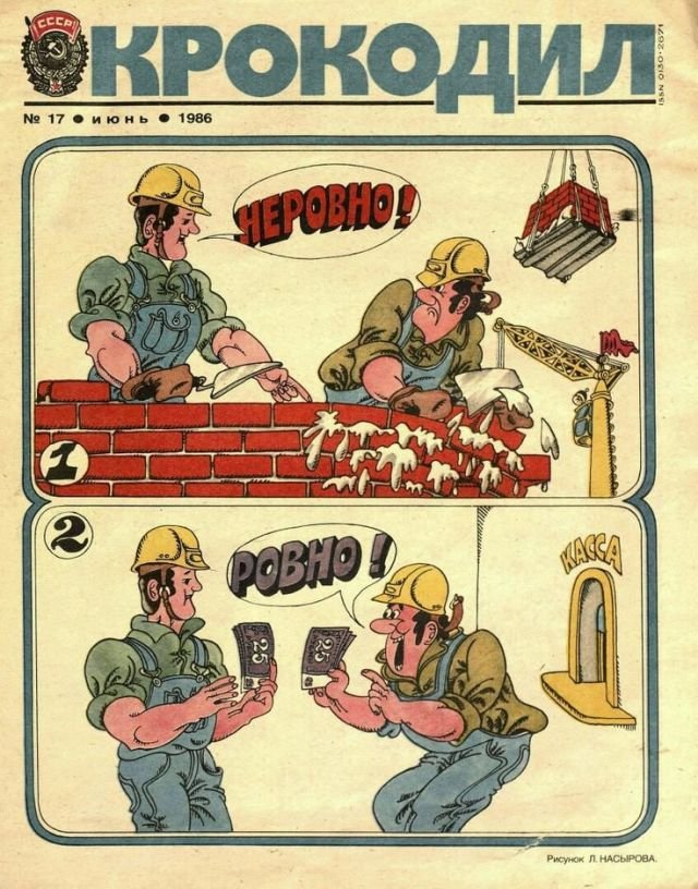 "Ровно!". Иллюстрация из журнала "Крокодил", 1986 год.