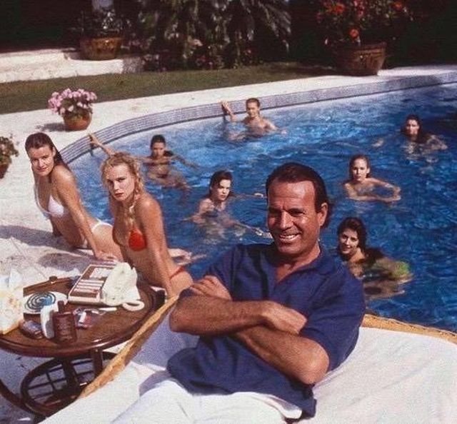 Хулио Иглесиас отдыхает в своем поместье, Майами, США, 1989 г.