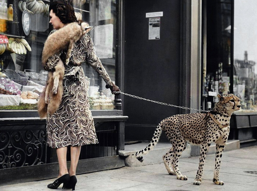 Актриса Филлис Гордон со своим ручным гепардом. Лондон, 1939 год
