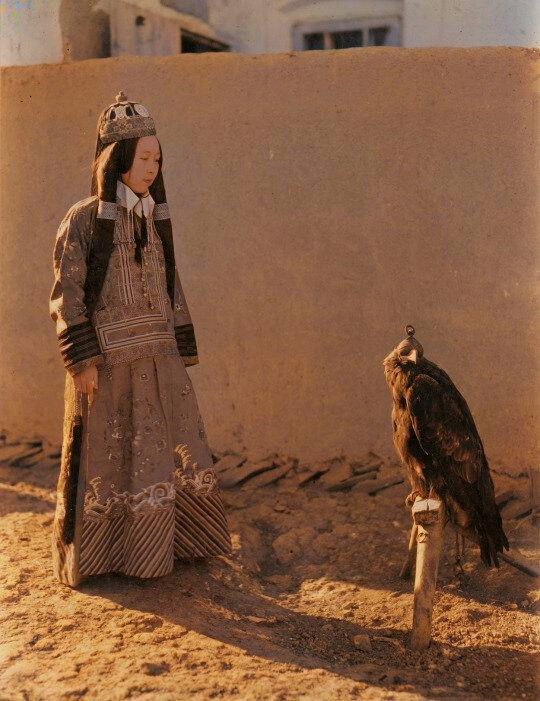 Торгутская принцесса Ниржидма с охотничьим орлом, 1932 год