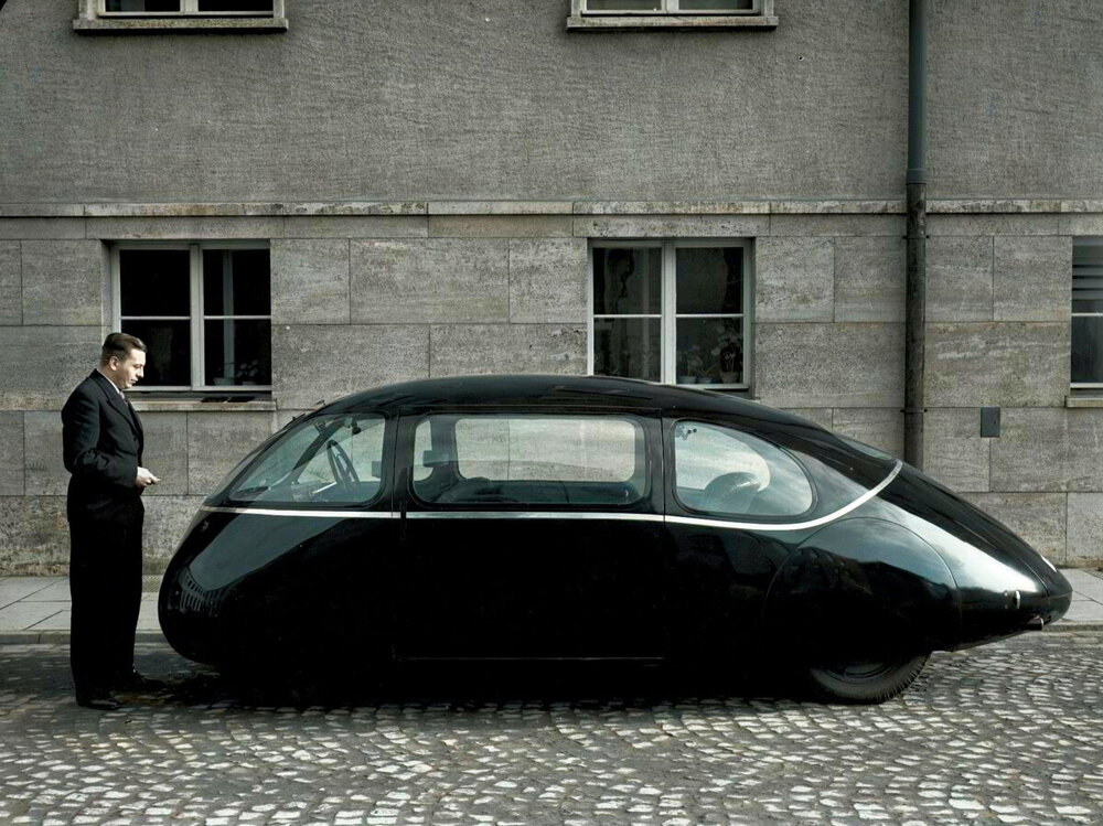 Причудливый супераэродинамичный, но очень непрактичный немецкий автомобиль, 1939 год. «Шлёрваген», как и другие обтекаемые автомобили того времени, имел форму самолётного крыла или капли.