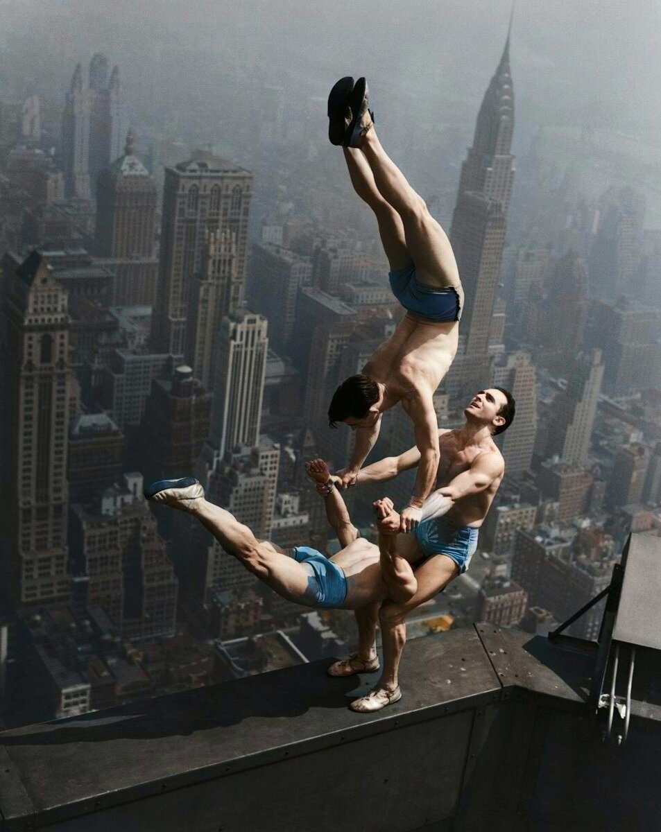 Акробаты тренируются на крыше небоскрёба Эмпайр-стейт-билдинг, 1934 год