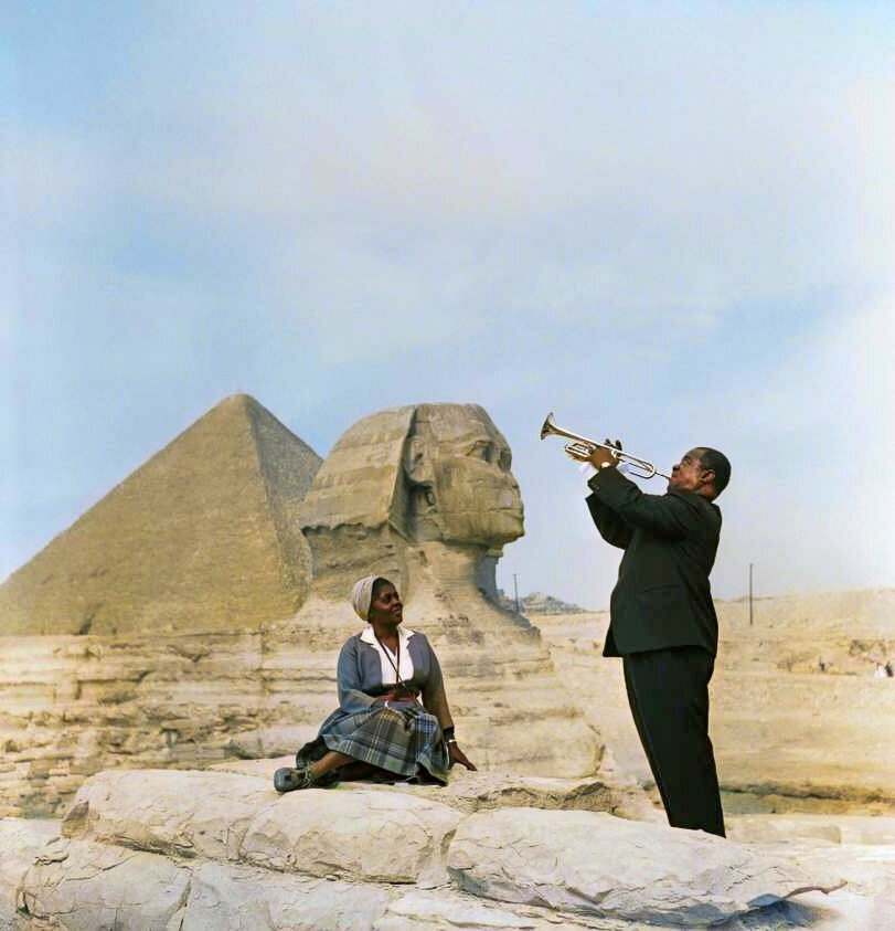 Луи Армстронг исполняет серенаду своей жене Люсиль Уилсон - Пирамиды Гизы, 1961 год