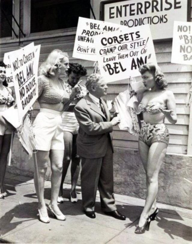 Актрисы протестуют против использования корсетов в спектаклях, Нью-Йорк 1946 год.