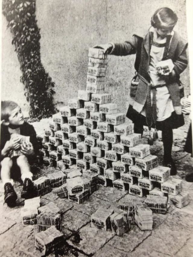 Инфляция 1923 года в Германии привела к тому, что за один американский доллар давали 4.7 триллиона( 4 700000000000) немецких марок.