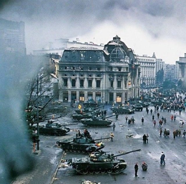 Бухарест, Румыния, свержение режима Чаушеску. 22 декабря 1989 года.