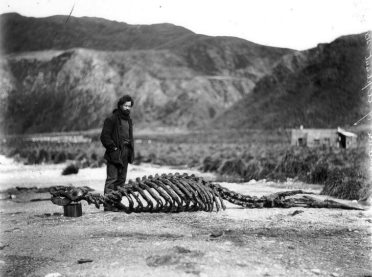 4. Ученый Австралазийской антарктической экспедиции Гарольд Гамильтон со скелетом морского льва, 1913 год