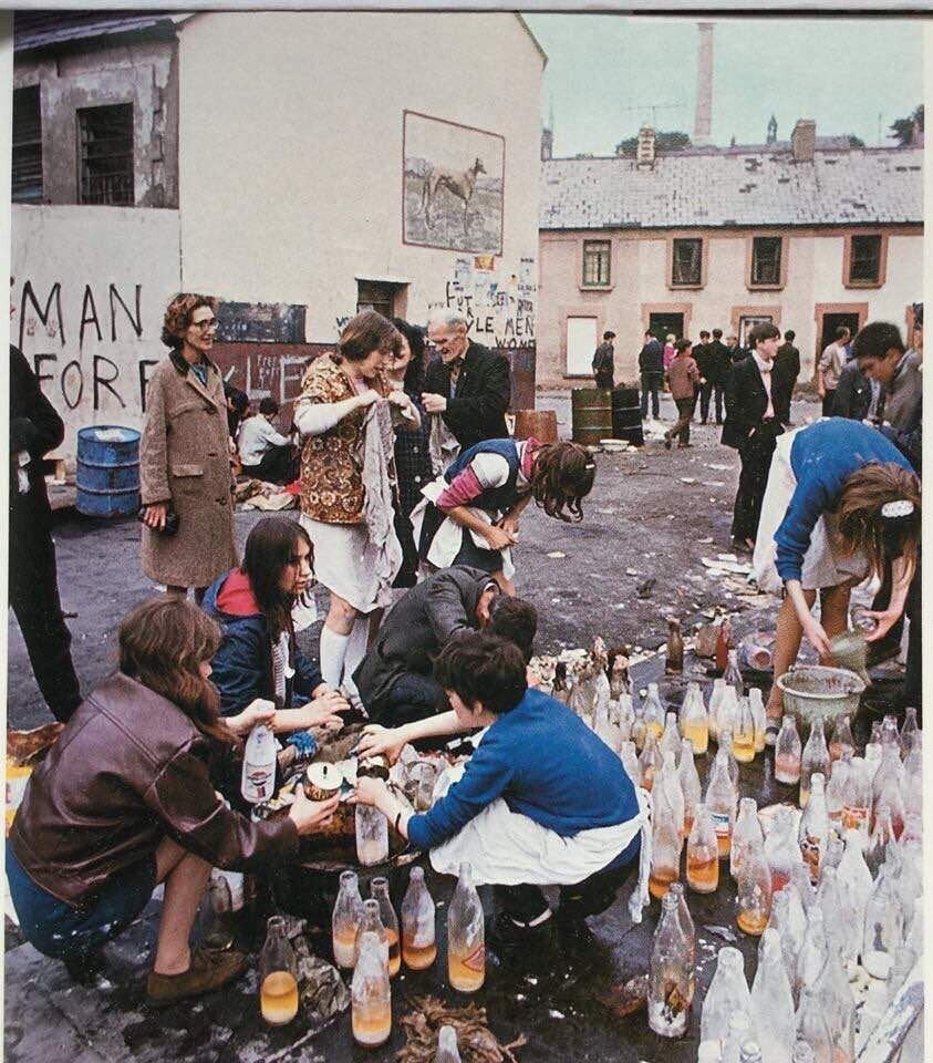 13. Девушки, делающие "коктейли Молотова” во время схватки при Богсайде, Ирландия, 1969 год. С этого события начались массовые беспорядки в Северной Ирландии