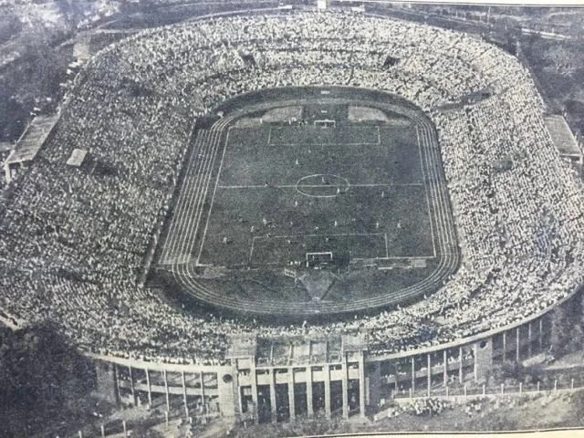 Вид на московский стадион «Динамо» из кабины самолёта во время игры, 1941 год (ещё до начала Великой Отечественной войны).