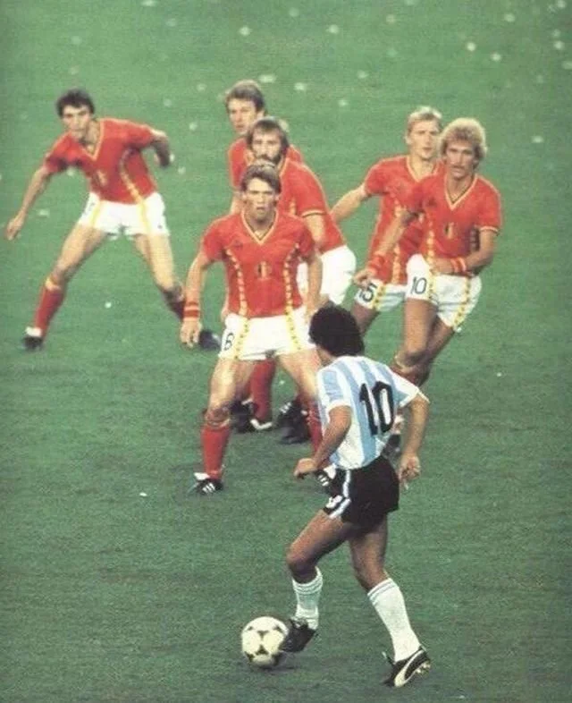 Диего Марадона против шести бельгийских игроков на Чемпионате мира. 13 июня 1982 г.
