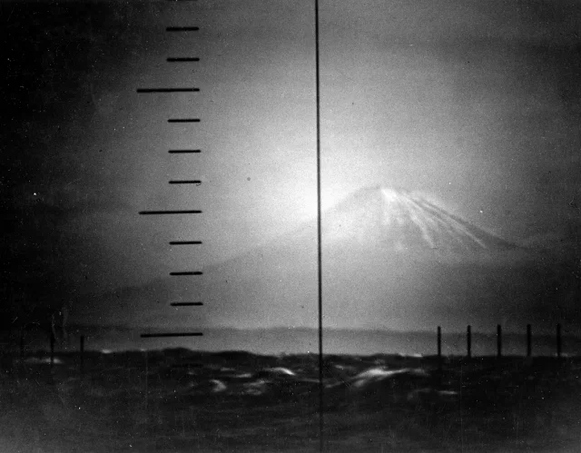 Гора Фудзияма, сфотографированная через перископ американской подводной лодки, 22 апреля 1943 года