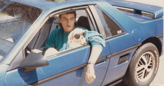 «Фотография меня, моей собаки в солнцезащитных очках и моего Fiero SE 1984 года»