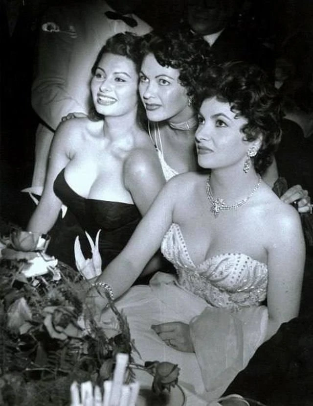 Секс-символы 1960-х годов: Софи Лорен, Ивонн де Карло и Джина Лоллобриджида на кинобале в Берлине.