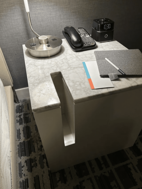 Для чего нужна вертикальная прорезь в прикроватной тумбочке отеля?