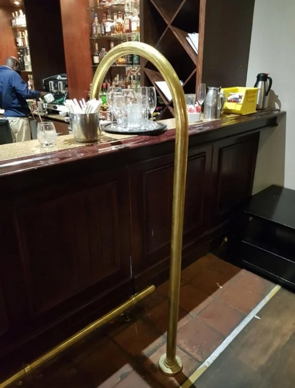 Эти трубы установлены для того, чтобы посетители не стояли возле открывающейся секции бара, позволяющей сотрудникам бара входить и выходить.