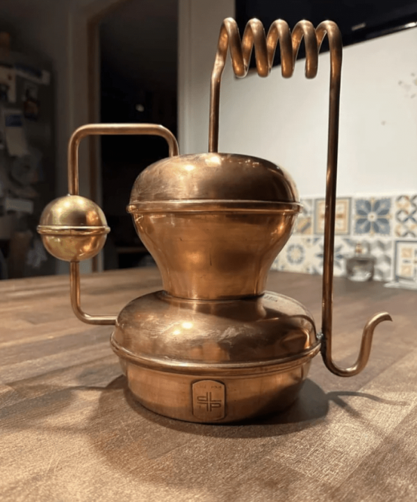 Это перегонный куб — аппарат, служащий для перегонки различных жидкостей.