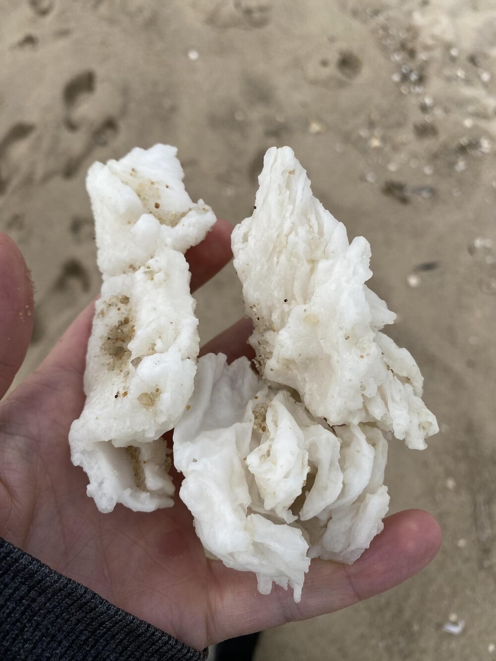3. Белое твердое вещество, выброшенное на берег на пляже