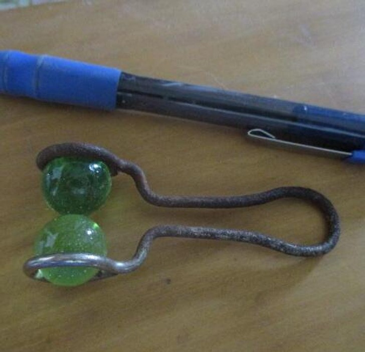 6. Это каркас из стальной проволоки с двумя стеклянными шариками. Шарики могут поворачиваться внутри каркаса