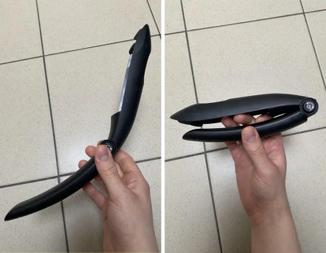 «Это пластиковый предмет с надписью „Phillips“, напоминает большую раскладушку, в верхней части есть колесики, нижняя часть похожа на ручку»