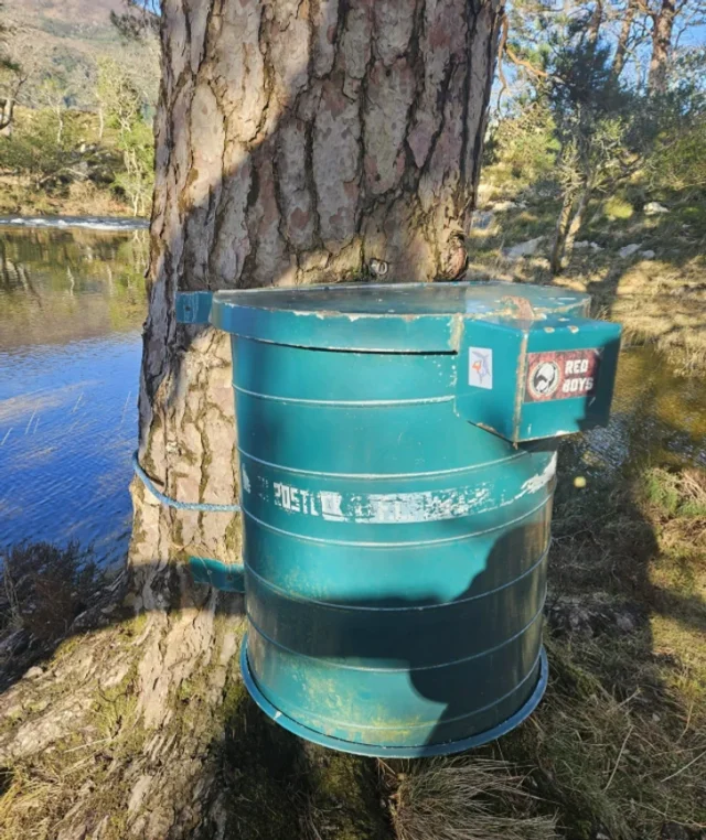 Похоже на хранилище для оборудования. Возможно, для сотрудников, работающих с природными ресурсами. Если здесь регулярно берут пробы воды, то логично хранить необходимое снаряжение прямо на месте, а не постоянно возить с собой. Внутри могут быть блокноты, ведра, контейнеры, приборы для записи данных и прочее.