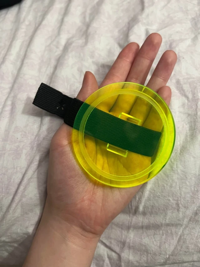 Это прозрачная палетка для смешивания средств по уходу за кожей. Представляет собой круглую жёлтую пластину с ремешком на липучке. Используется для смешивания сывороток или кремов, чтобы избежать прямого контакта с ладонью.