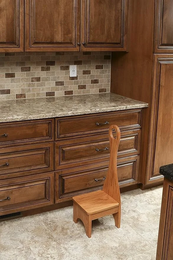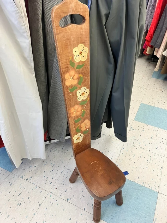 4. Короткий и узкий деревянный табурет с очень высокой спинкой, найден в магазине