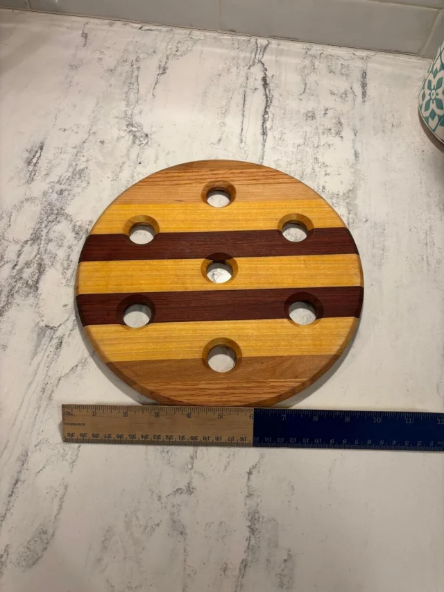 6. Круглая доска с семью отверстиями, изготовленная из разных пород дерева