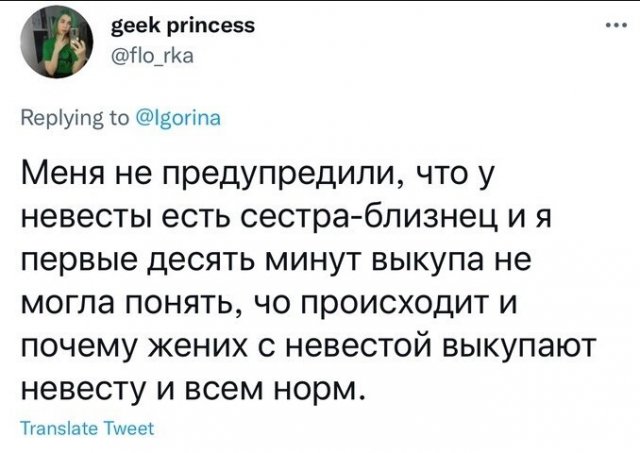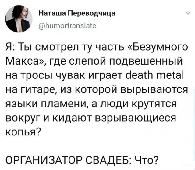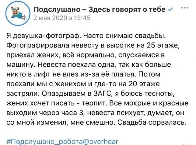 О том, какими безумными могут быть свадьба (14 фото) Категория: Приколы 2 мая 2022 Свадьба - важное решение в жизни каждой пары. Некоторые спокойно отмечают это событие с родственниками и близкими друзьями, другие же устраивают чуть ли не массовые шествия. А бывают и совсем смешные ситуации - в этой подборке именно такие. +3 отношения, фейлы, фото
