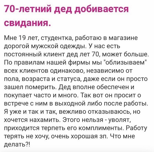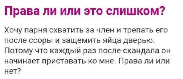 Категория: Безумные истории с женских форумов, PEGI 16