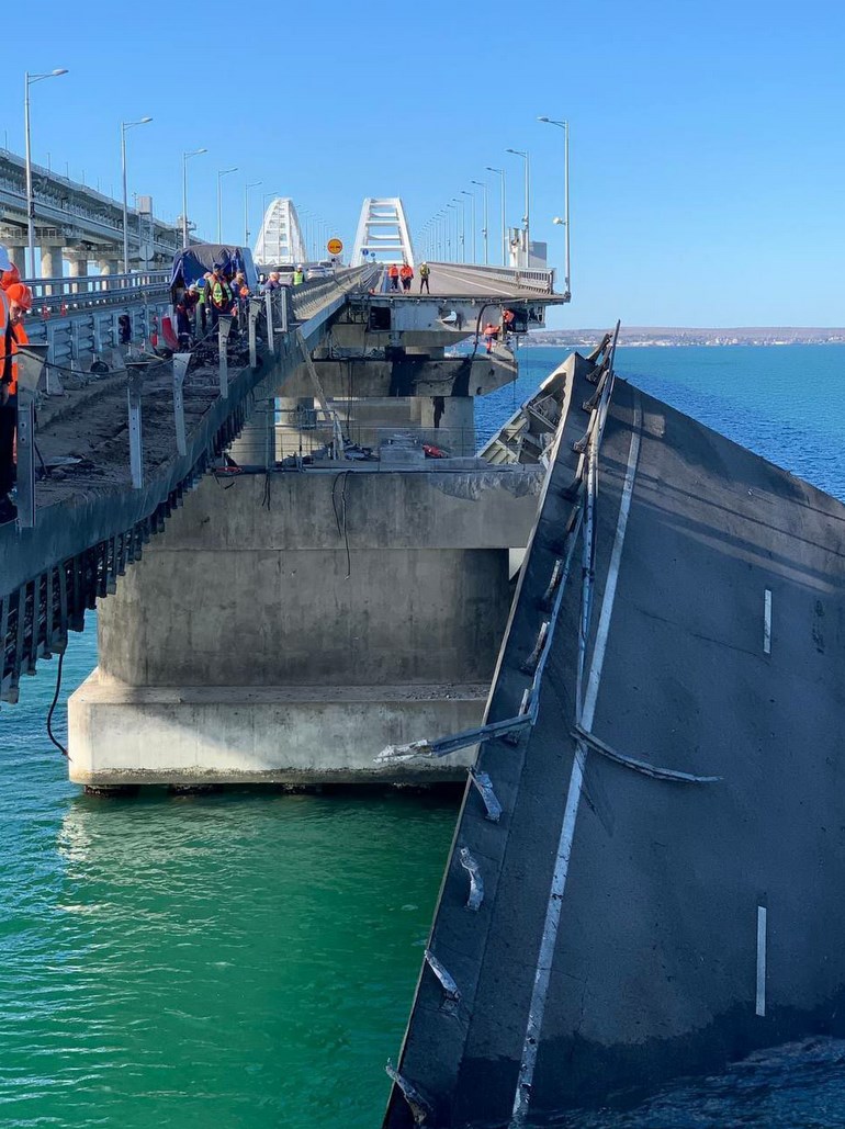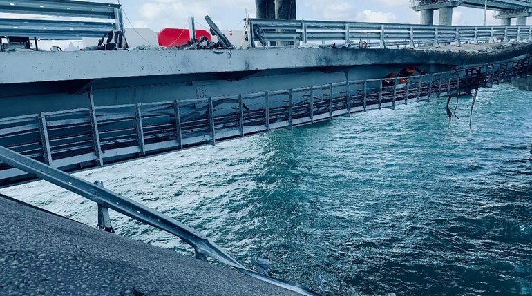 - Тушки русских говорили, что с мостом все в порядке, машины едут, а поезда тем более. Что-то пропаганда не соответствует фотографиям.