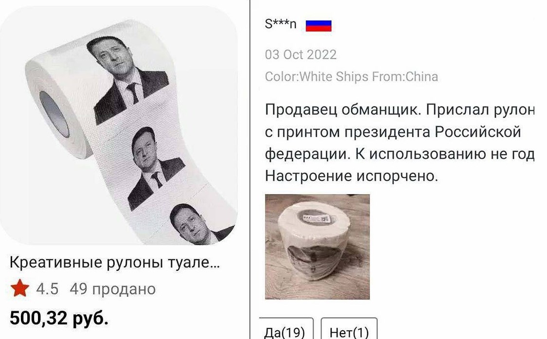 - ШиZопатриот заказал туалетную бумагу с Зеленским, но ему прислали с Путиным