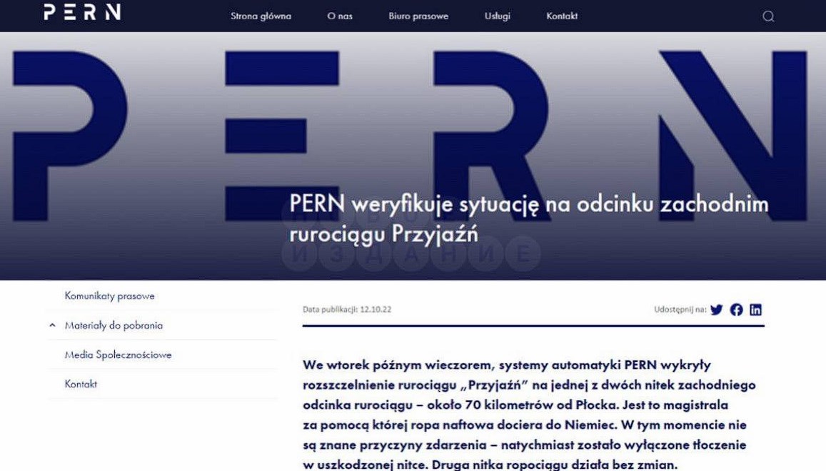 - Произошла разгерметизация на одной из ниток нефтепровода «Дружба» в Польше, сообщает оператор PERN. Данная нитка является основным маршрутом поставки нефти в Германию.
