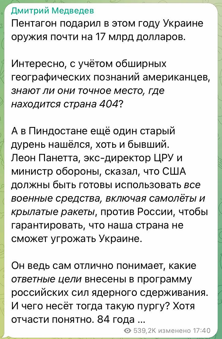 - Димон Медведев как обычно накатил лишнего и в своем тг-канале назвал США «Пиндостаном».