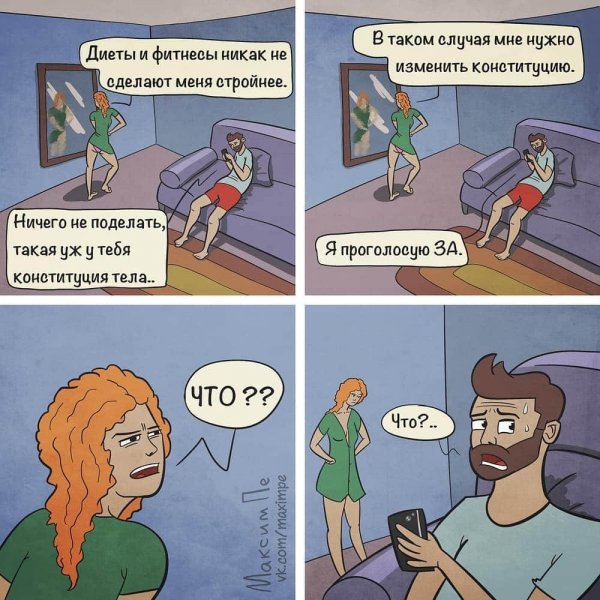 Комиксы - это отличный и простой способ скоротать перерыв, а также поднять себе настроение. Московский художник по имени Максим делает именно такой контент. Он рисует веселые и остроумные комиксы, главная фишка которых заключается в неожиданной концовке. Давайте поглядим на его творчество.
