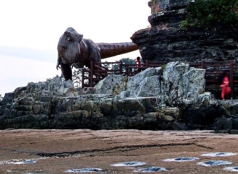 В Корее есть довольно много тематических парков и пешеходных троп, посвященных динозаврам, в местах, где были найдены следы и окаменелости динозавров